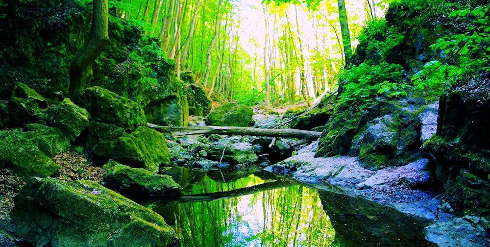 Ha tempót szerettünk volna tekerni, bizony, számos rossz hírrel kell szolgálnunk. Fenyőfőn például útba esik majd az Ősfenyves, amelynek története az utolsó jégkorszakhoz kötődik, ha fái ennél valamivel fiatalabbak is. Aztán, ha követjük az útvonalat, belebotlunk a bakonyi Gyilkos-tóba, amely méltán kapta nevét erdélyi nagytestvérétől, hiszen hasonlóan lenyűgöző látványt nyújt a víztükörből kiálló facsonkjaival. Mivel eddig csupa ismert helyre gurultunk, ideje bevenni magunkat a rejtélyes Öreg-séd völgyébe. A Barátok útján középkori szekerek nyomában tekerhetünk, miközben mohos sziklák, kőgörgetegek és kidőlt fák színesítik a tájat. Itt, e varázslatos erdő mélyén lakott a jó ízlésű ősember, akinek ingatlanába, a Száraz-Gerencei-barlangba bármikor bekukkanthatunk.
