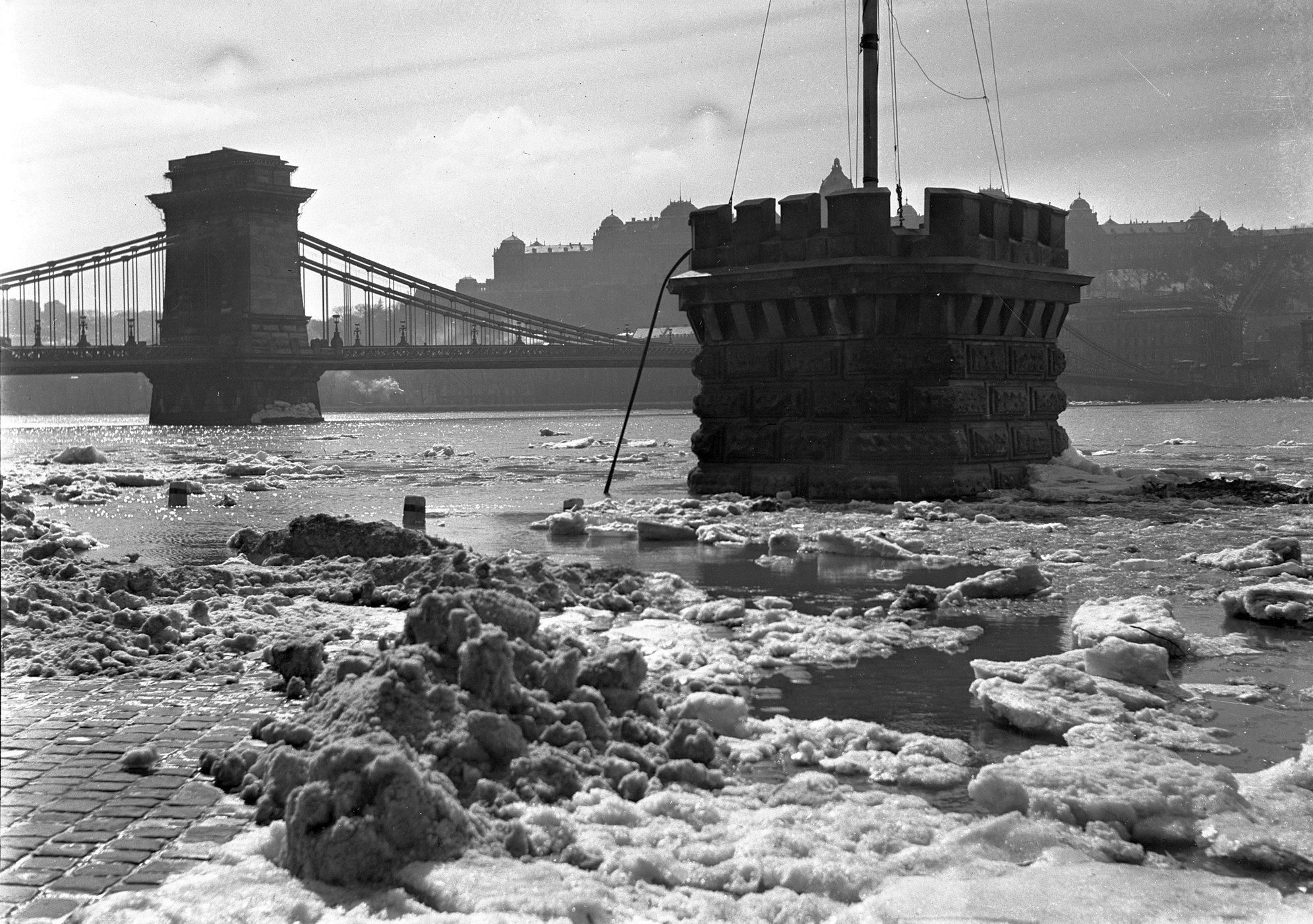 „Budapest felkészülten várja a viz emelkedését. Szerdán, a késő esti órákban végigjártuk a főváros mindkét oldalán a Duna partját. Este tíz óra körül a Duna mindkét partja csendes, jeget már alig látni a Dunán, csak a víz szokatlan magassága tűnik szembe. A Sztálin-híd (mai Árpád híd – a szerk.) előtt négy hajó áll, amely a magas vízállás miatt már nem tud áthaladni a híd alatt. A Rómaiparton néhány kabin víz alatt van, de csak a legmélyebben eső részeken.