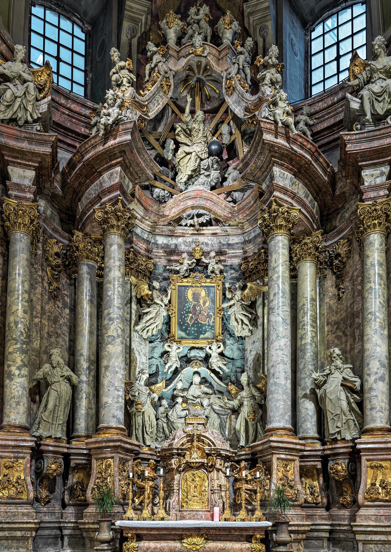 A templom főoltárát Európa egyik legismertebb Szűz Mária-ábrázolása, a lengyelországi częstochowai Fekete Madonna másolata díszíti.