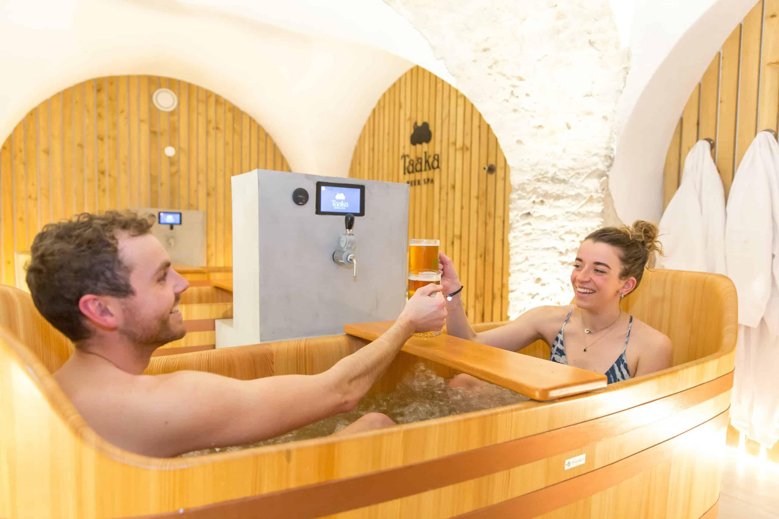 Ha a cseh családi farm vagy a pozsonyi sörfőzde helyett egy szép, középkori, francia városban próbálnád ki ezt a mókát, akkor a strasbourgi Taaka Beer Spá a te helyed. A legújabb sörwellnessben 60 és 90 perces fürdőzést lehet választani, közben persze megkóstolhatjuk a helyi sört is. A fürdőzés egy személyre 60 percre 50 euró, a 90 perces turnus pedig 75 euró/fő, és ebben természetesen a sörfogyasztás is benne van.