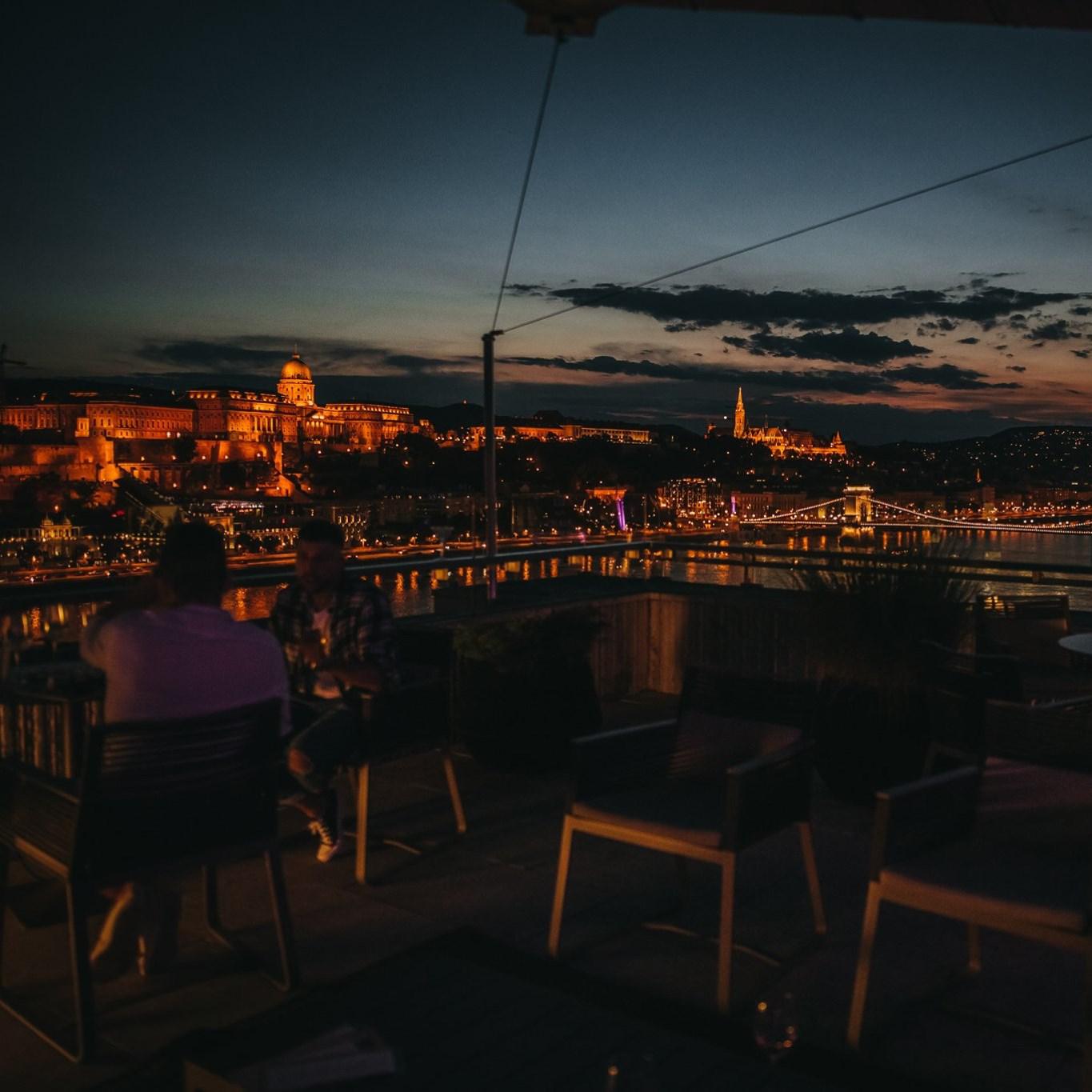 Az Apáczai Csere János utcai Marriott Hotel ilyen csodát rejt! A hotel 9. emeletén nyitott meg tavaly ez a szuper hely, ahol nemcsak különleges koktélokat ihatunk, hanem a fantasztikus, új étlapról is válogathatunk. Talán sehol máshol nincs ilyen kilátás Budapestre, hiszen körbefordulva Buda és Pest szépséges épületeit is egyszerre láthatjuk – a legtöbb tetőteraszon a Duna-parti kilátásnak csak egy részletét láthatjuk. A hidakat, a Gellért-hegyet, a várat, a Szent István Bazilikát és a Parlamentet is kémlelheted erről az elegáns tetőről. Az étlap egyszerű, de zseniális, főleg könnyű előételekből áll, koktélból és borból is kicsi a kínálat, de azok mind tökéletesek.