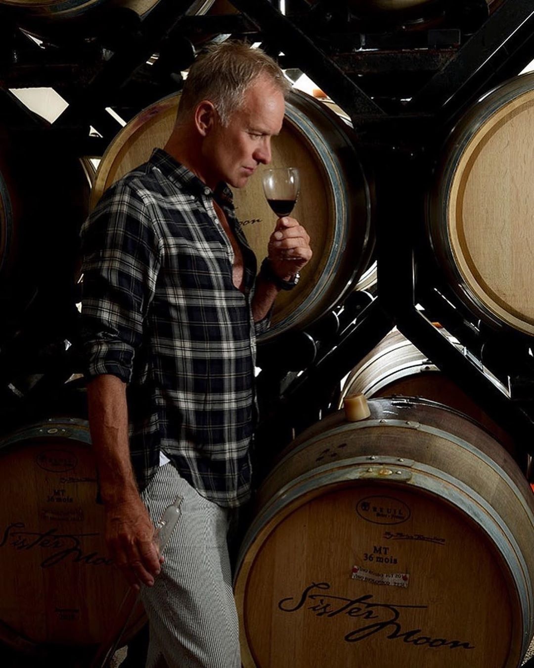 A zeneszerző-énekes Sting Toszkánában a Tenuta Il Palagio borászattal közösen készít borokat. A zenész azt mondja azért nevezte el az összes borfajtáját a leghíresebb számairól, mert a borai ugyanúgy a művei, mint a dalai. Az Il Palagio birtokot, szőlészetet és a rajta fekvő villát a 17. században alapították, a zenés és felesége, Trudie 1999-ben vásárolta meg és újította fel az egészet, és fogott bele a szőlőtermesztésbe, borkészítésbe. A képen az énekes épp egyik legjobb terméküket, a 2018-as Sister Moont kóstolgatja, de érdemes a galéria is belelapozni, ahol a csodás birtokra is bepillanthatunk.