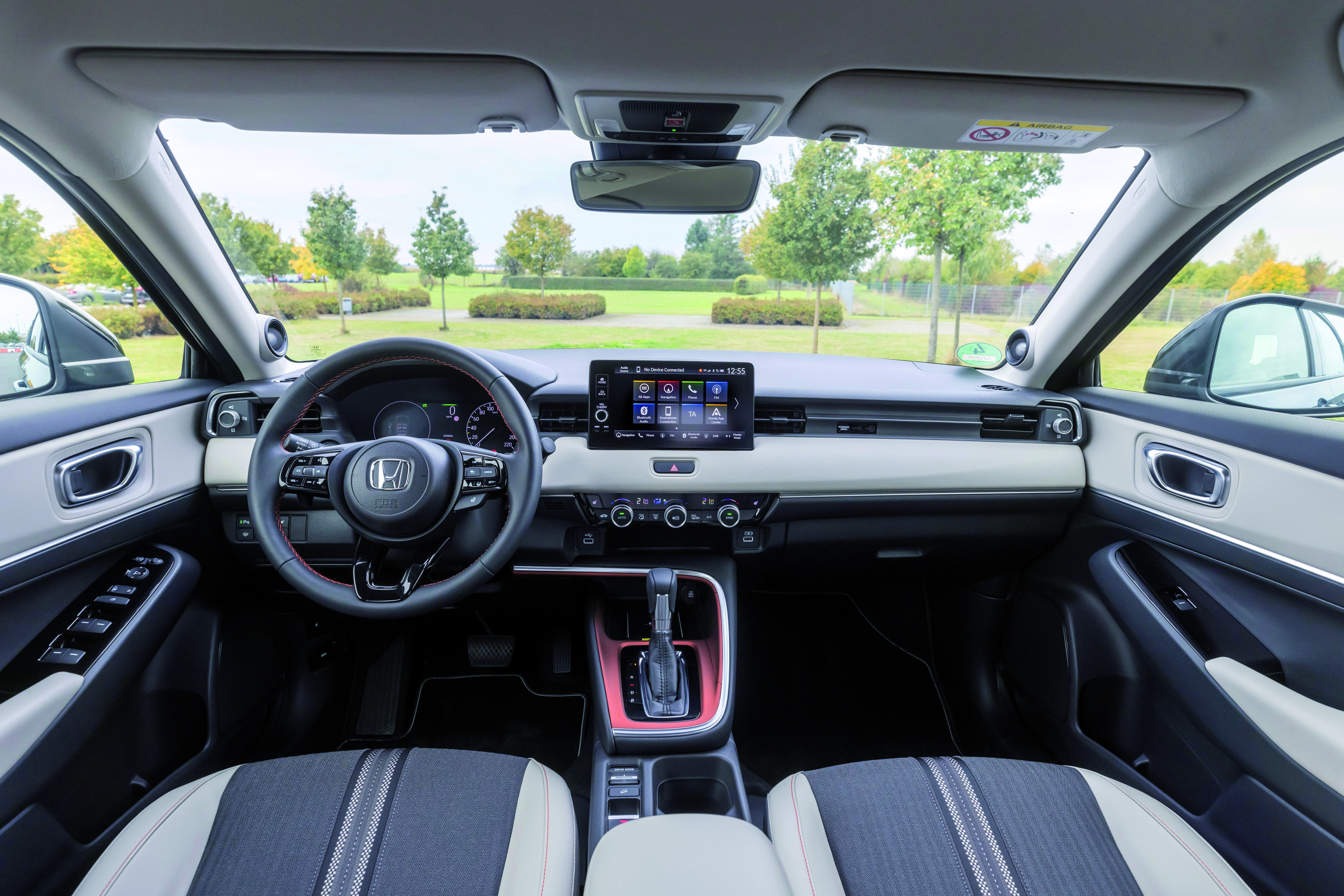 Egy prototípusnál elegendőek lennének a fent említett technikai bravúrok, ám a HR-V e:HEV családtag akar lenni, mégpedig az a fajta, „akivel” öröm együtt lenni, mindig számíthatunk rá, és nem fáraszt rigolyákkal. Ehhez pedig nemcsak formás, letisztult vonalvezetésű kasztnit, de élhető, praktikus és kényelmes belső teret is építeni kellett az e:HEV technológia köré. Nagy meglepetést talán nem okozunk azzal a kijelentéssel, hogy ez legalább olyan színvonalon sikerült a tervezőknek, mint a hajtáslánc. A kompakt külső méretek szellős, otthonos utasteret engednek, a fejlesztők koncepciója szerint minél kevesebb teret hagyva a műszereknek és kezelőszerveknek, és minél többet az utasoknak. Az eredmény maga a letisztult praktikum átlag feletti minőségben. Semmi hivalkodás, az autóban mégis minden aktív és passzív biztonsági berendezés, vezetősegédlet és szórakoztató-információs funkció megtalálható, ami manapság elérhető és elvárt. Az átgondolt koncepció nagyon hamar átlátható és elsajátítható, nem érezzük magunkat kevésnek az autó professzionális tudásának árnyékában. Az új HR-V e:HEV a család autója: kényelmes, tágas, praktikus és otthonos, de közben apu tudja, micsoda csúcstechnika van a lemezek alatt, és minden induláskor bizsereg kissé a lába a gázpedálon.