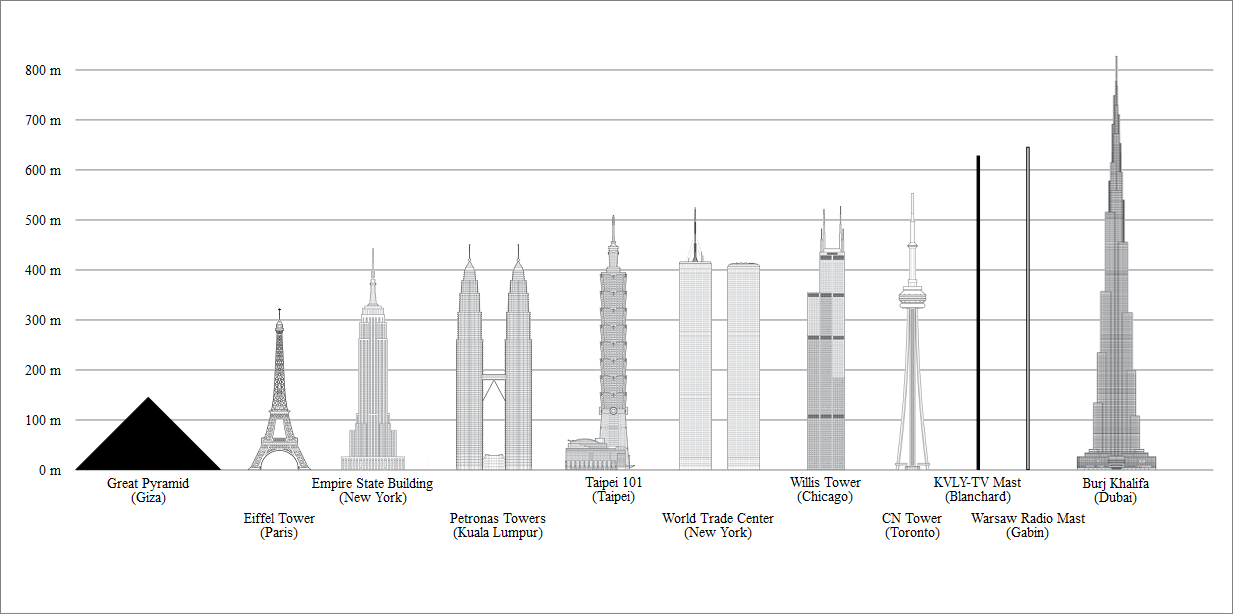 - A legmagasabb felhőkarcoló (antenna nélkül 828 m)