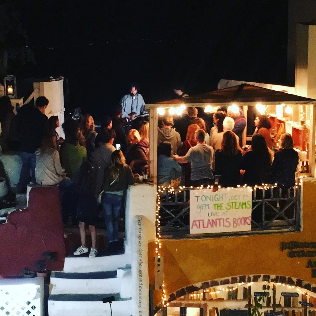 Semmi fennkölt nincs ennek a barlanglakásba épített könyvesboltnak a történetében. Két angol turista úgy döntött belevágnak, és Santorinin nyitnak együtt egy könyvesboltot. A két fiatal két évvel később néhány barátjával együtt visszatért a szigetre és megnyitoták az Atlantis Books boltot.