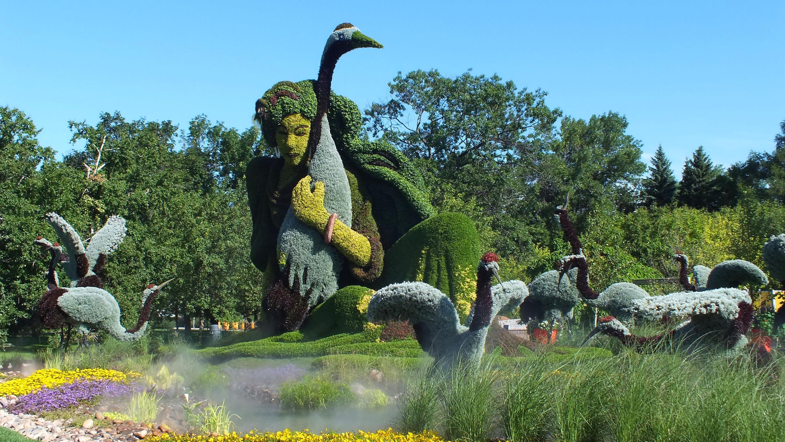 A 75 hektáros Montreáli Botanikus Kert a világ egyik legfontosabb botanikus kertje. Különleges és ritka növényeknek ad otthont, ahol fesztiválok keretében élő szobrokat (pl. favázra felfuttatott virágok) is kiállítanak. A Jardin botanique de Montréalt 1931-ben alapították, és azóta is népszerű oázis a kanadai város szívében. A parkban helyet kapott egy kínai kert bonsai-okkal és penjing-gyűjteménnyel, egy japán kert, amelyben japán növények élnek, és az első Nemzetek Kertje is itt van, amelyet kizárólag kanadai növények népesítenek be. A kert arról is híres, hogy gyakran szerveznek ide programokat, és állítanak installációkat: a fenti képen a kultúrák keveredése volt a téma.