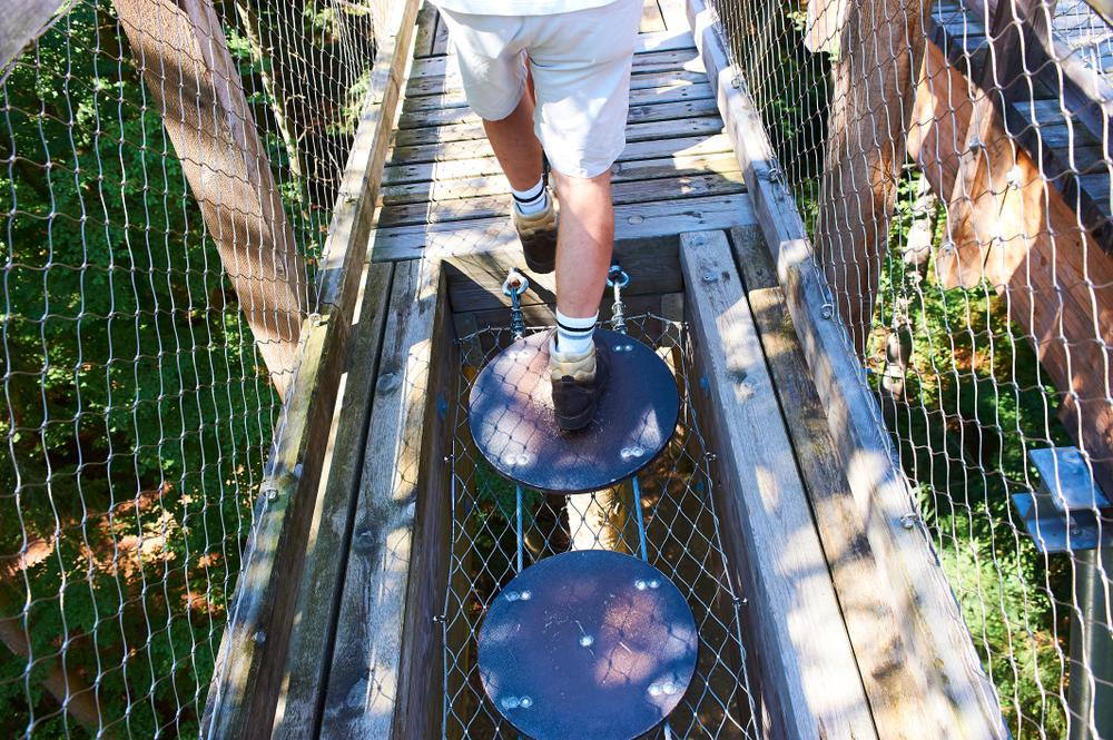Németország legnagyobb szigetén, a Balti-tenger csodálatos természeti környezetében 2013 óta várja ez a nem mindennapi élményközpont a látogatókat. A Baumwipfelpfad Rügen tanösvény teljes hossza 1250 méter, a végén található a kilátótorony, azaz a Sasfészek, melynek elnevezése a 40 méter magas építmény alakjára utal. Az akadálymentes lombkorona-sétányon kicsik és nagyok egyaránt felejthetetlen élményekkel gazdagodhatnak: feljuthatnak az ősi bükkfák tetejére, tárlatvezetésen vehetnek részt, és persze megkóstolhatják a helyi gasztronómia leghíresebb finomságait is. A 82 méteres tengerszint feletti magasságból gyönyörű kilátás nyílik a Balti-tengerre és Rügen szigetének egyedülálló tájára.