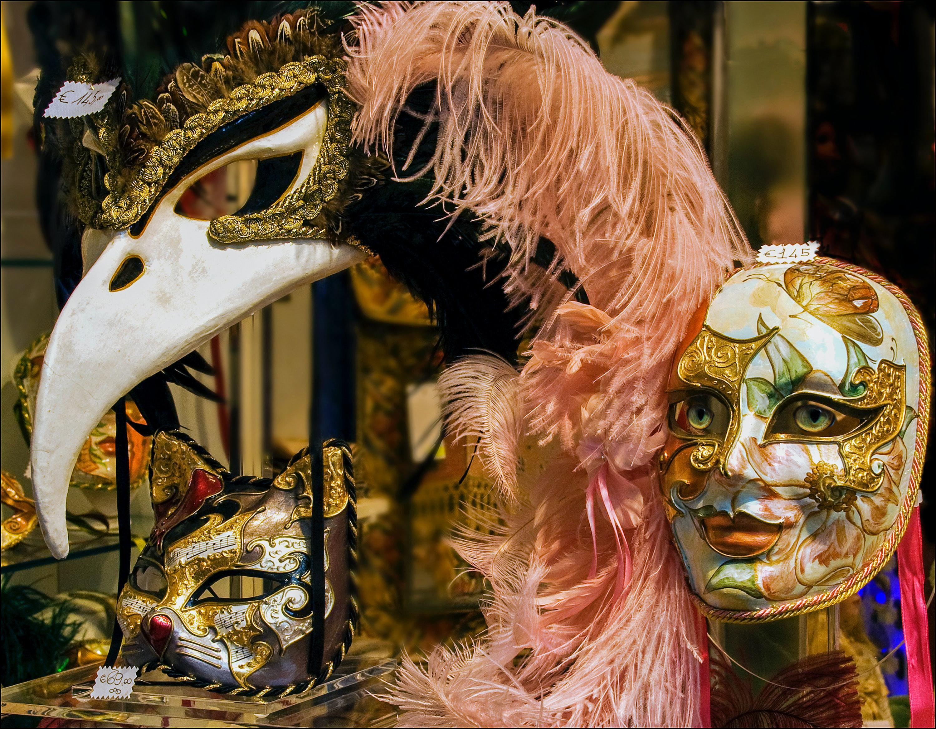 A híres velencei karnevál egyértelműen a jelmezekről szól! A férfiak körében máig népszerű a kissé ijesztő, kampós orrú Pestis Doktor maszk, ami a középkorban terjedő pestishez köthető – orvosi védőöltözetként funkcionált a járvány idején. Eredetileg azért viseltek egész arcot és testet eltakaró öltözetet a lakosok, hogy az alacsonyabb osztályokba tartozó emberek is részt vehessenek az ünnepségen. A csicseriborsóból és lisztből készült finomság, a frittelle és a mázzal bevont péksütemény, a galani is ugyanúgy hozzátartozik a farsanghoz, mint a maszkok, jelmezek.