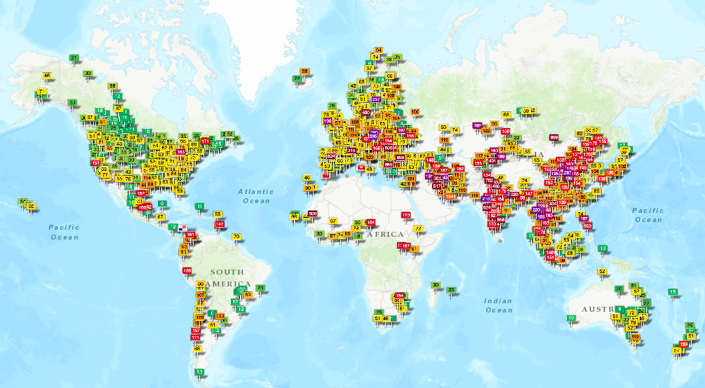 A The World Air Quality Project oldalán valós idejű térképen nézhetjük meg, milyen annak a városnak a levegője, ahol vagyunk vagy ahova utazunk, költözünk. Hogy ez miért fontos? A levegő szennyezettsége nemcsak hosszútávon árt a környezetnek, hanem egyénenként is súlyos károkat okoz. Ha sokáig élsz, utazgatsz olyan helyen, ami a térkép szerint piros, lila, vagy barna, azaz veszélyesen szennyezett zónába esik, akkor a tüdőd is károsodhat.