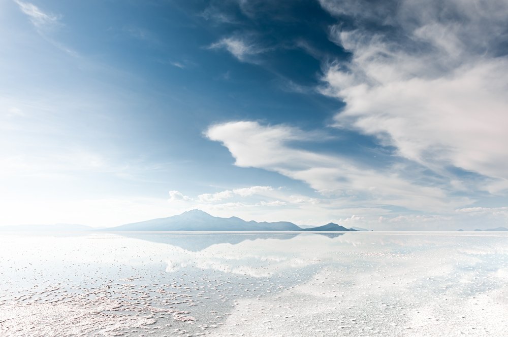 Az Andokban található Salar de Uyuni a világ legnagyobb kiterjedésű és egyben legmagasabban fekvő felszíni sómezője. A kiszáradt tómeder 10 582 km² nagyságú (ez 18 Balatonnyi terület) és 3656 m-es tengerszint feletti magasságig kell felkapaszkodnunk, ha látni szeretnénk. A sósivatag általában száraz, de időszakosan néhány centis vízréteg borítja, s ilyenkor a fenti képhez hasonló érzéki csalódások sorát tapasztalhatjuk.