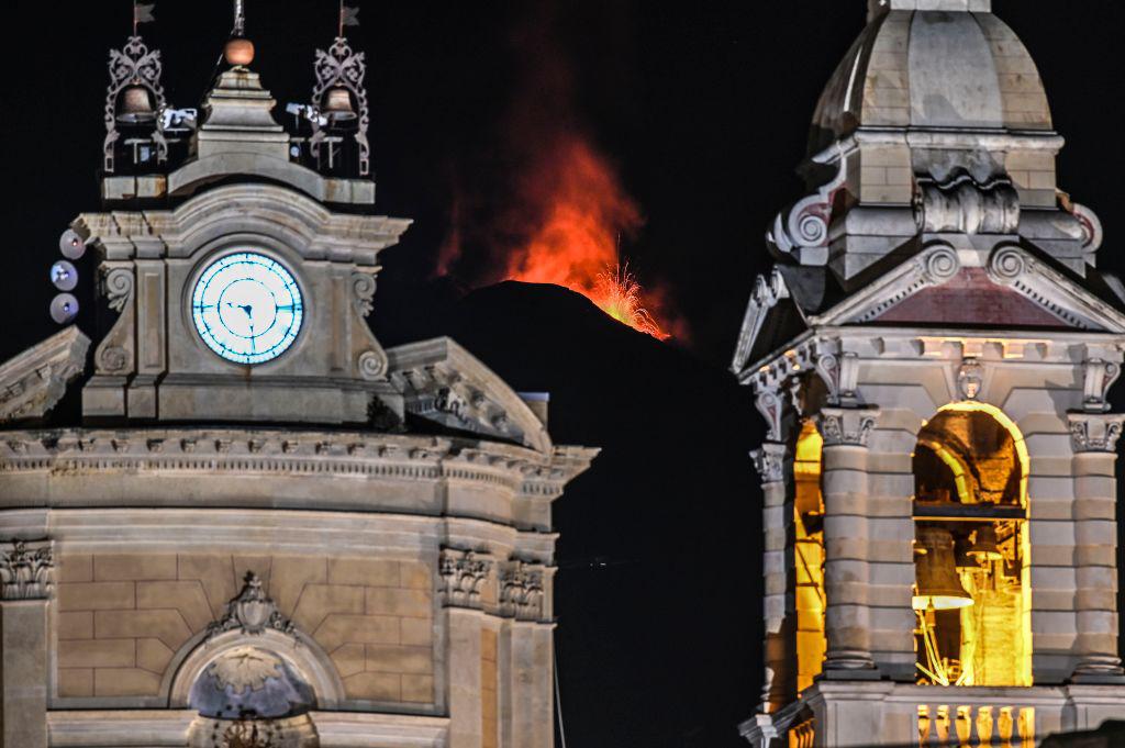 A szicíliai hegy egy hete folyamatosan pöfög, füstöl és ontja magából a lávát. A közeli Catania repülőtér ideiglenesen bezárt, és szomszédos Pedara város lakói szerint múlt héten egyszer, mintha szikladarabok is potyogtak volna a kitöréskor, miközben még most is vastag hamutakaró borítja a várost.