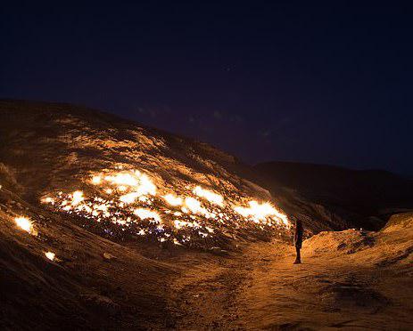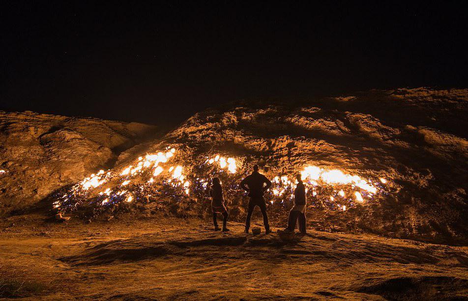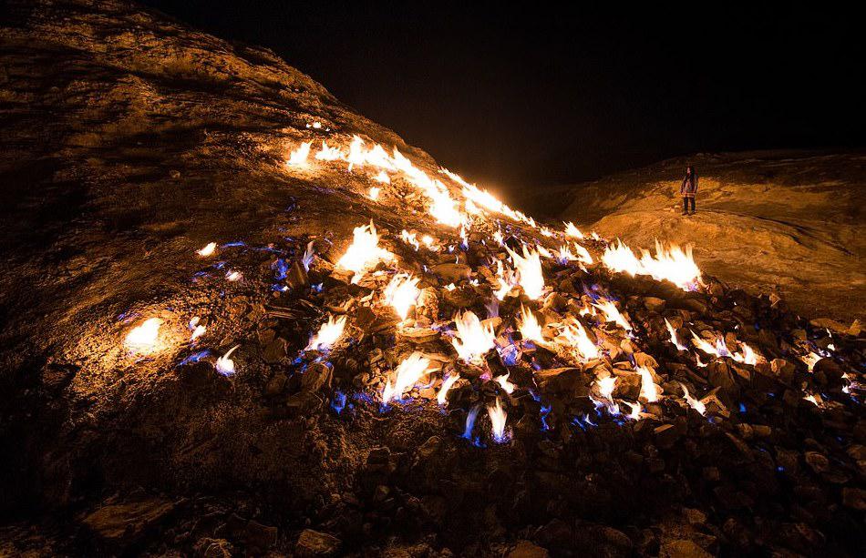 Bár a jelenség mindenképp különleges, nem ez az egyetlen lángoló hegy, hiszen az azerbajdzsáni Yanar Dağ is megszakítás nélkül ég. A domb alatt természetes földgázforrás van, ez táplálja lángot – nem is kicsit, hiszen megesik, hogy a lángok akár három méteresre is felcsapnak, ami igencsak veszélyessé teszi a megközelítését. Az előbb említett Taskooh dombjainál ilyen veszély nem fenyegeti a turistákat.