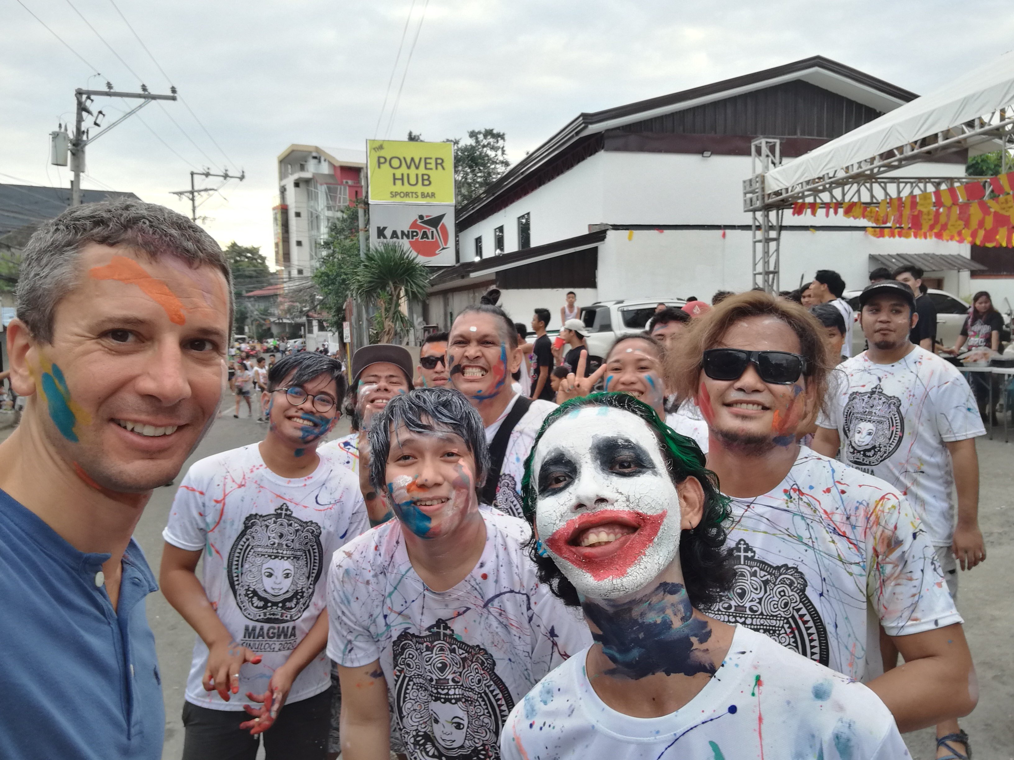 a legváltozatosabb arc- és testfestéssel ellátott jókedvű résztvevők kérdés nélkül befestik a szabad testfelületeidet, mivel az utcán sétálva nem lehet kitérni a nyúlkáló ecsetek, ujjak és festékbombák elől.