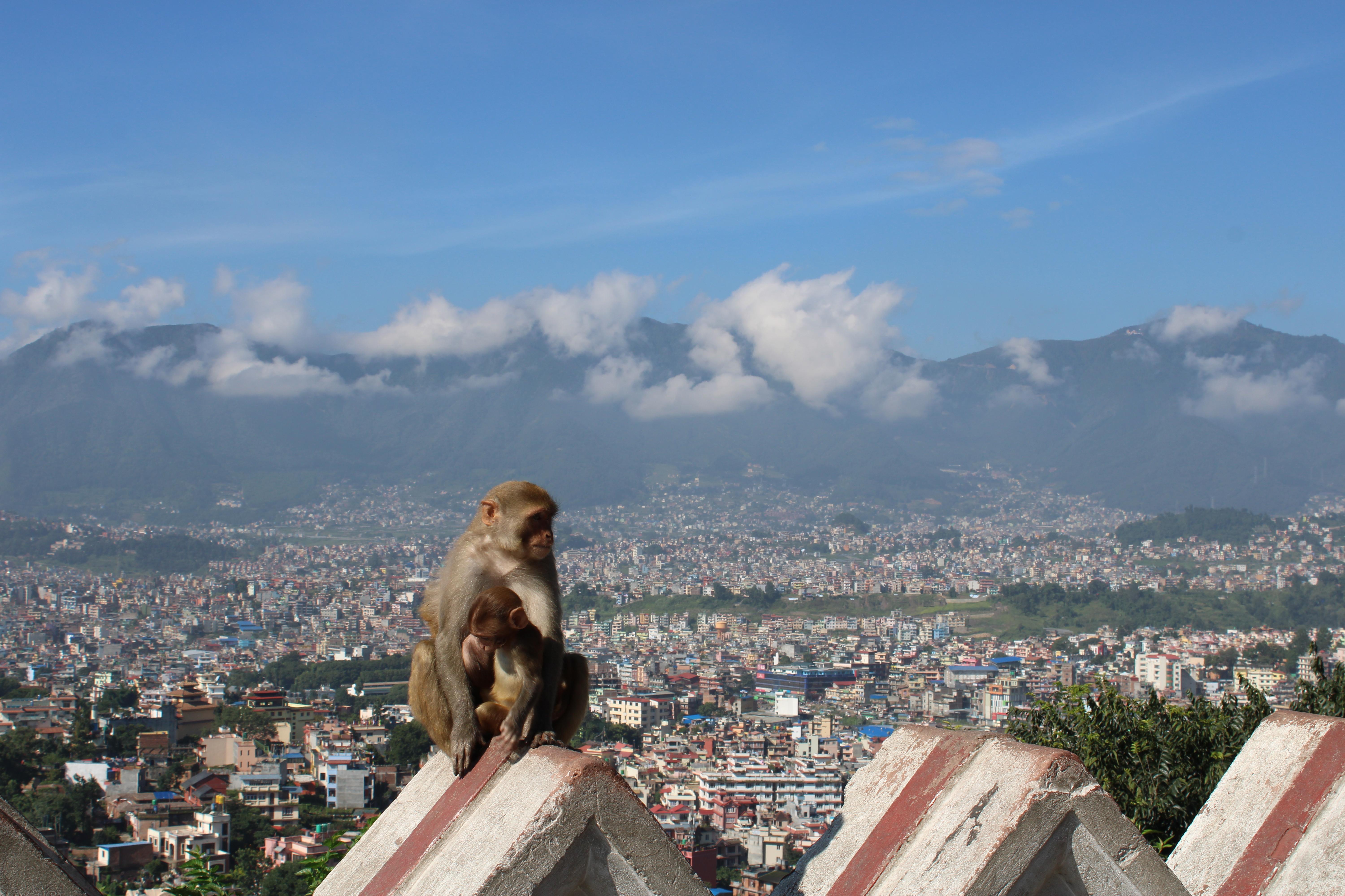 Az összes repülési idő 9 óra, ami egészen befogadható még az Abu Dhabi átszállással együtt is. Sőt, egészen kevésnek tűnt akkor, amikor Katmanduban, a világ túlfelén találtam magam. Az első hetet egy családnál töltöttem a fővárosban, valamint rövidebb túrákat tettem körülötte, amire mentális okokból is szükség volt; Katmandu rendkívül izgalmas, de ugyanennyire fárasztó is. A másfél milliós város nagy része inkább falunak tűnik, többszintes, düledező épületekkel. Legtöbb helyen földút van és sár, kecskét, tyúkot a ház előtt tartanak, minden lakóház félig üzlet vagy piac. A szűk utcákban mindig tömeg van, amit robogók százai szelnek át, eleinte rendkívül veszélyesnek tűnő módon.