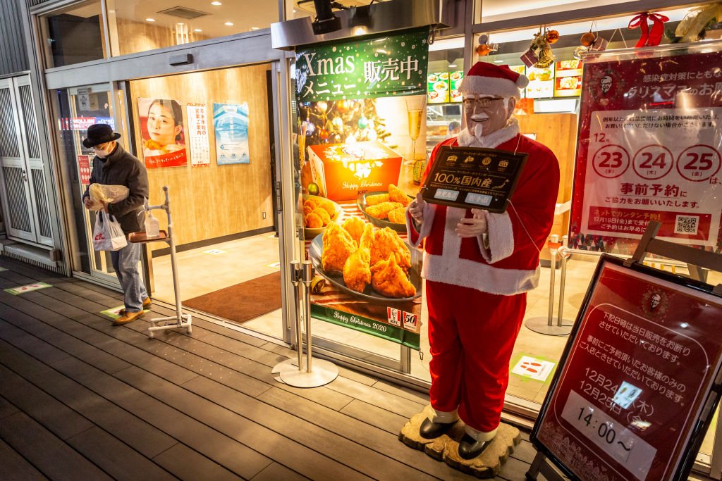Az egyik legérdekesebb tradíció viszont meglepő módon a KFC-hez köthető: mivel mindenki csirkét eszik karácsonykor, ezért az étteremlánc előtt kígyózó sorok állnak. Mindezt a KFC az 1974-ben indított „Kentucky for Christmas!”reklámkampányának köszönheti.