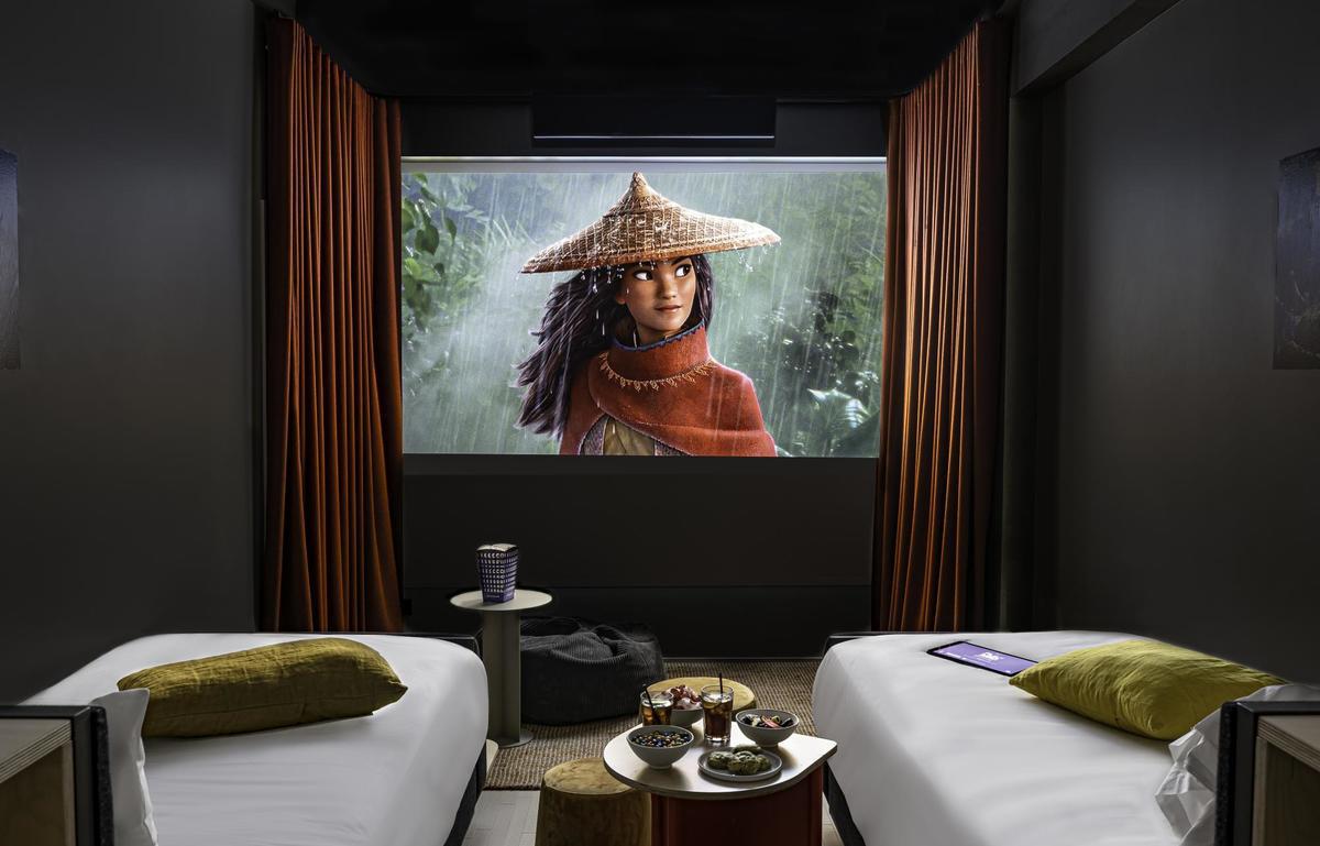 A párizsi Hotel Paradiso mind a 36 szobáját filmvetítőkkel és óriás vásznakkal szerelték fel, ebből két lakosztálya műszaki engedéllyel rendelkező mozi, ami azt jelenti, hogy nemcsak régi filmeket, de a premierfilmeket is élvezhetjük kényelmes, szállodai körülmények és szolgáltatások között.