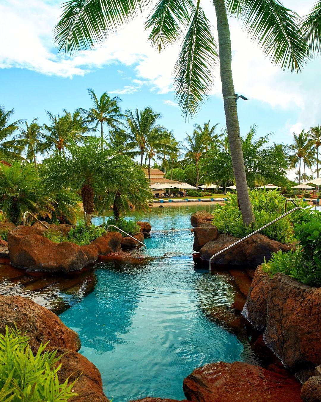 A Hawaii-ra érkezők egyik nagy kedvence a kauai-i The Lodge at Kukui'ula hotel, amely már önmagában attól is fantasztikus, hogy gyönyörű a környezete, de ami még különlegesebbé teszi az az, hogy természetes medencéket és pezsgőfürdőket is kialakítottak a hotel kertjében, tehát nem csak csempézett medencékben csobbanhatunk, hanem homokos öblökben, ami gyerekekkel érkezőknek a lehető legjobb megoldás, mert fokozatosan mélyül.