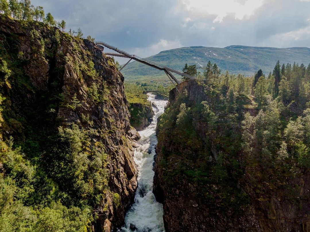 A Vøringsfossen alatti 50 méteres mélységbe tekinthetünk le az új építményről. A Låtefossen vízesés előtti autóúton elhaladni pedig életreszóló élmény.