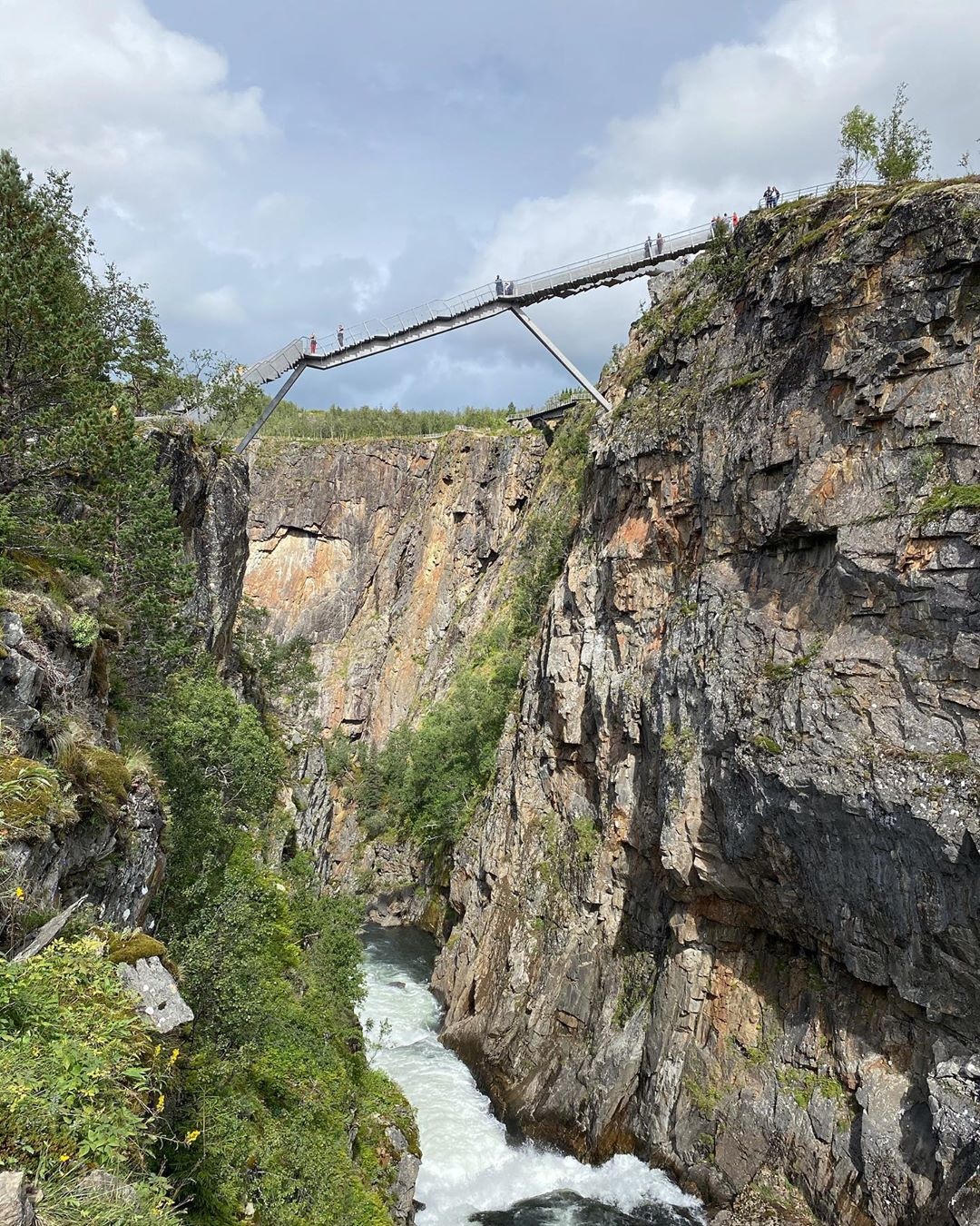 A 182 méter magas zuhatag vize a Måbødalen-völgybe ömlik le, a híd pedig ezen a völgyön ível át. Az újítás része volt egy hosszú turistaösvény kialakítása és egy kávézó építése is. Az építkezés első fázisában, 2018-ban az ösvényt, a parkolót és a kilátót adták át, idén pedig a hidat vehették birtokba a turisták. A beruházás 2021-ben fejeződik be, addigra még egy kilátót építenek, és meghosszabbítják az ösvényt.