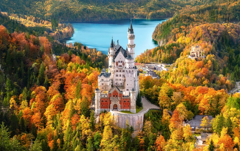 A tündérmesébe illő kastély Németországban, Münchentől délnyugatra található. Az Alpok vonulataival szegélyezett kastélyt a 19. század második felében építették fel, szobáit pedig egy vezetett túra során be is járhatjuk.
