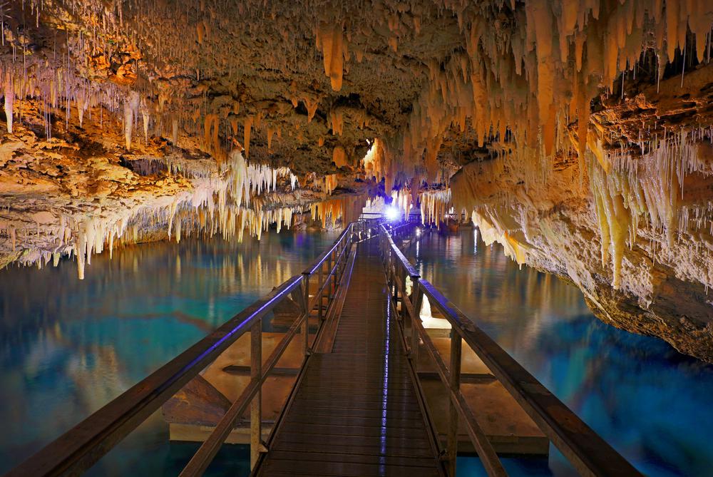 Ezt a bermudai természeti kincset Fantasy Cave-nek, azaz Fantasy-barlangnak is nevezik, hiszen olyan fantasztikus színekben pompázik, ami egyedivé teszi az egész világon. Persze a barlang üzemeltető jól beállított színes fényekkel is ráerősítenek az amúgy is gyönyörű látványra, így tényleg olyan, mintha valami varázslatos helyen sétálnák a vibráló kék víz és a több méteres lelógó kristályok között.