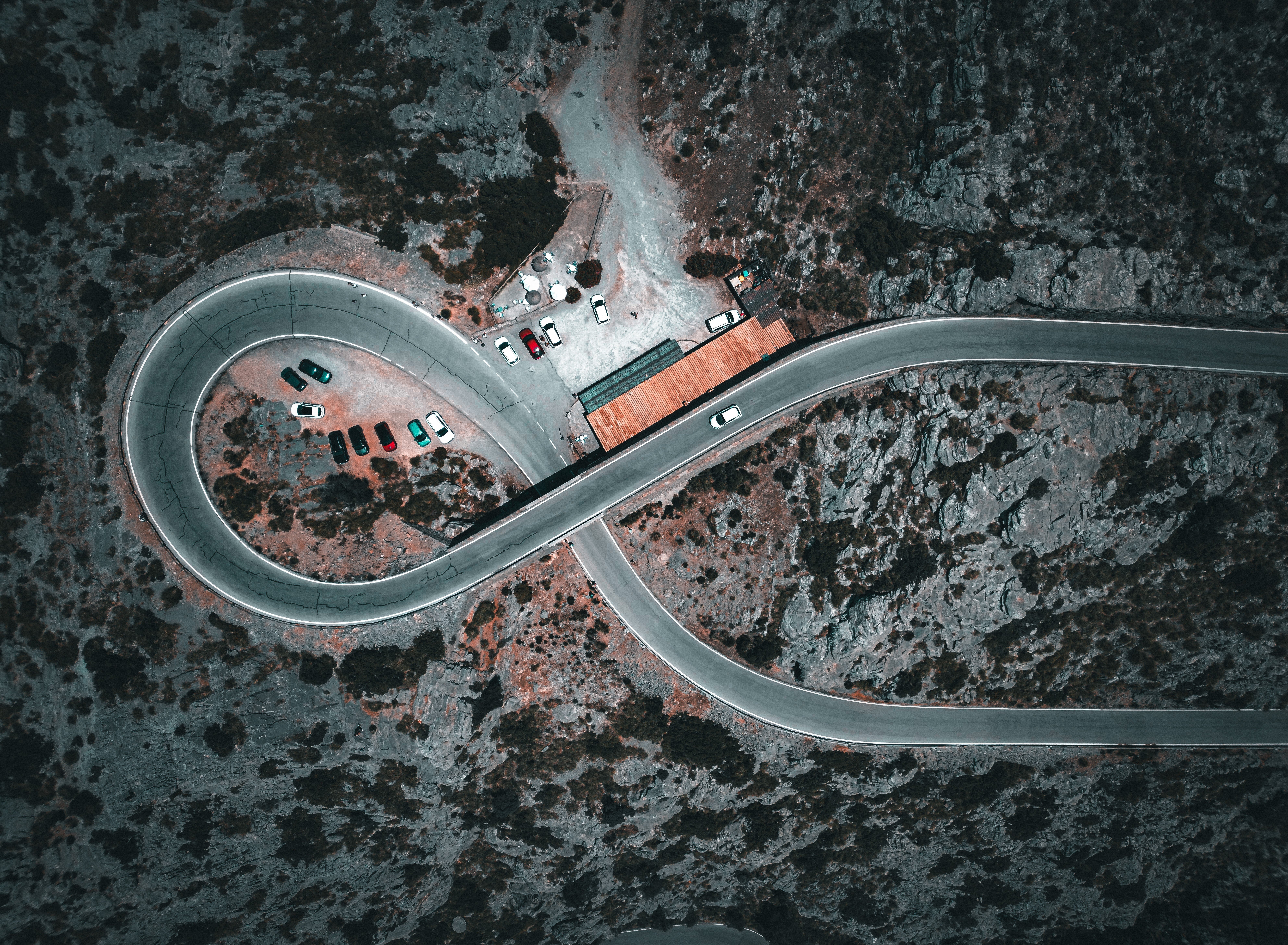 egy ponton az út egy teljes kört alkot, és önmaga alatt kanyarog.