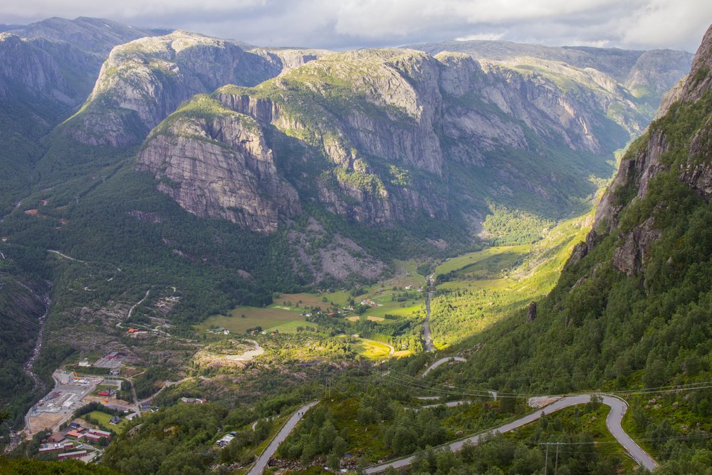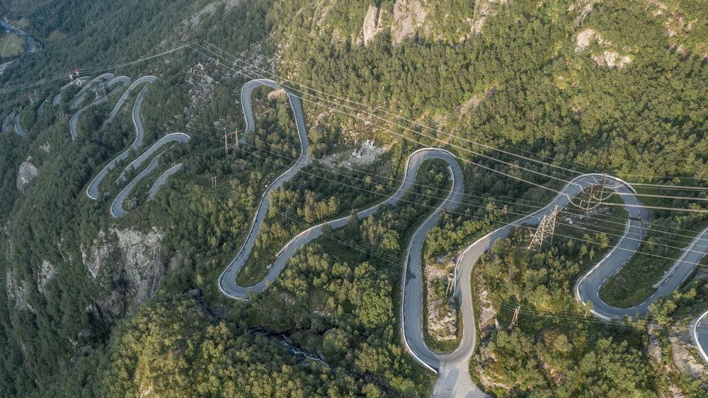 A norvégiai Lysebotn falu annyira elszigetelt helyen van, hogy csak hajóval vagy a fenti képen látható kanyargós szerpentinen lehet megközelíteni. A Lysefjord végén található apró településen turistatömegre nem kell számítani, és a helyi lakosság száma is csekély.