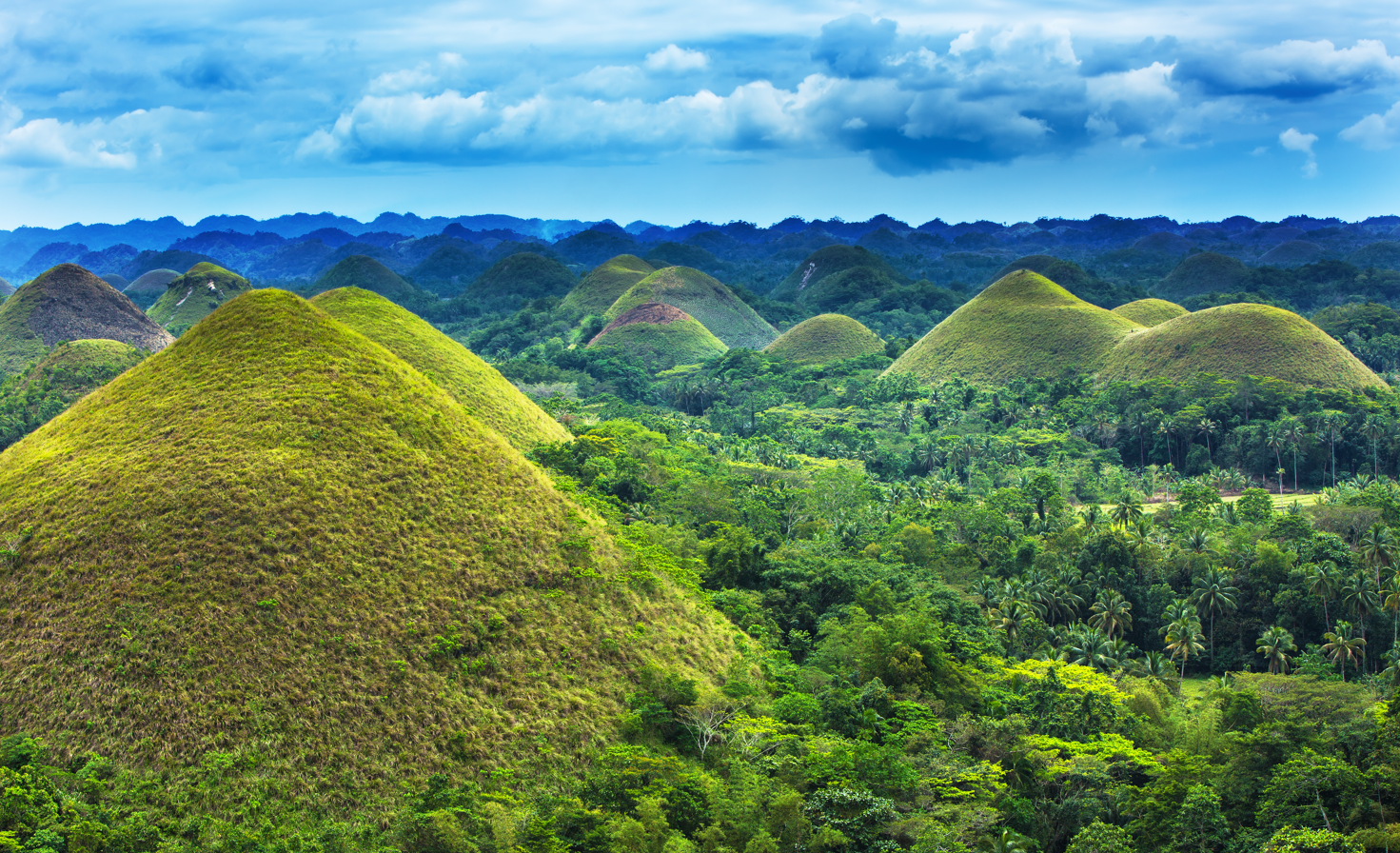 A Fülöp-szigetek egy tagját, a Bohol-szigetet homokos tengerpartjai mellett szokatlan domborzata teszi különlegessé. A sziget közepén ugyanis bonbonokra, kakaóhegyekre emlékeztető kúpszerű képződmények magasodnak, melyek a szárazabb időszakban barna színt öltenek – ez adta a Csokoládé-hegyek elnevezést. A becslések szerint legalább ezer, de legfeljebb kétezer ilyen dombocska borítja a sziget felszínét, melyek az erózió és a korall-lerakódások révén jöttek létre.