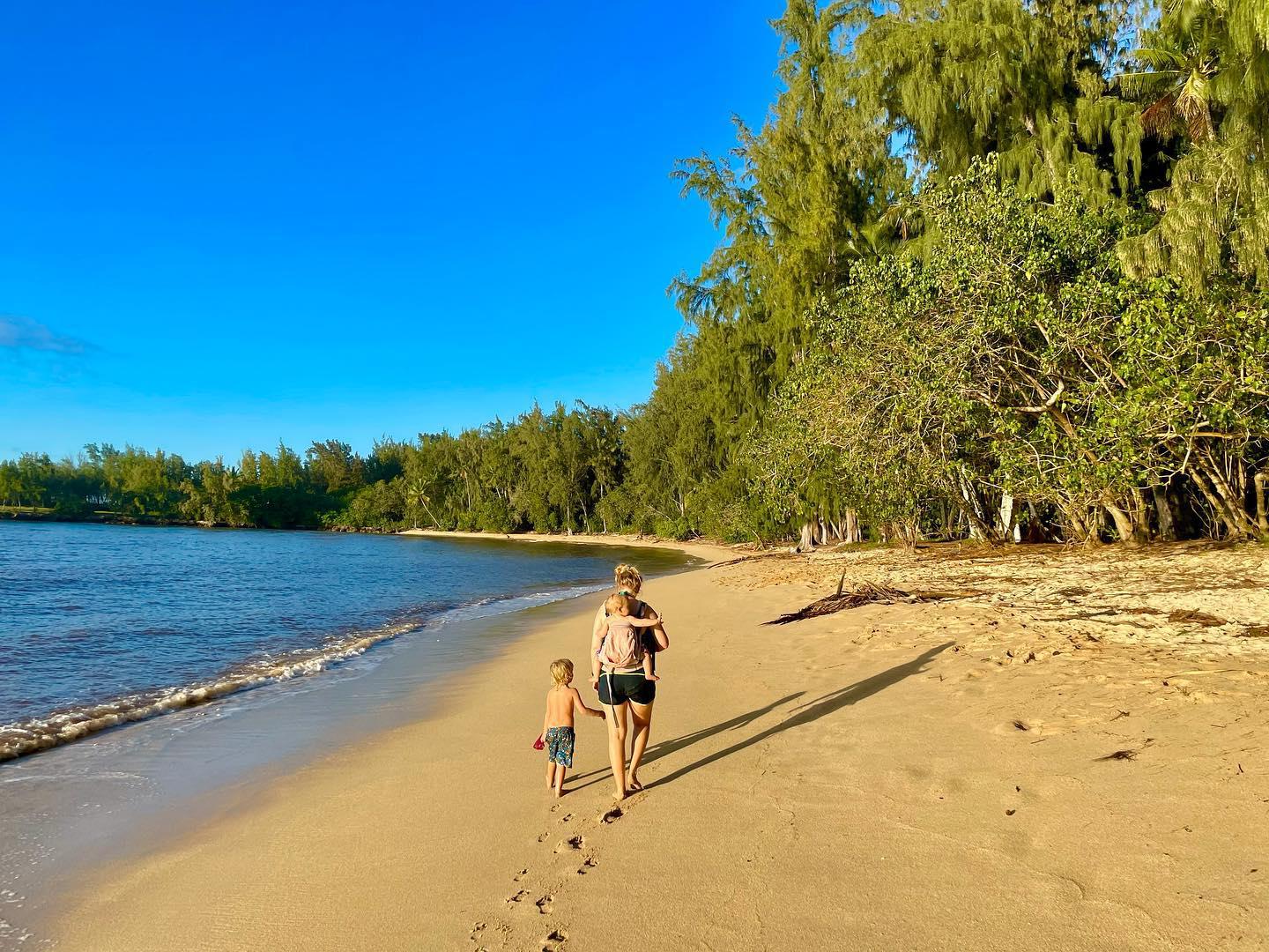 Az elmúlt egy, két hónapban, amióta visszaállt minden, a két nagyobb gyereket reggel nyolcra bevisszük az óvodába, és mivel most otthonról dolgozunk, a kicsivel tízig sétálunk a tengerparton, fürdünk, feltöltődünk. Ezután már túl erősen süt a nap, hazamegyünk, dolgozunk, ebédet főzünk, és felváltva vigyázunk Mannára. Délután szintén kimegyünk a partra, de akkor már mind az öten, vagy túrázunk egyet a közelben. Hetente kétszer bemegyünk Honoluluba bevásárolni.