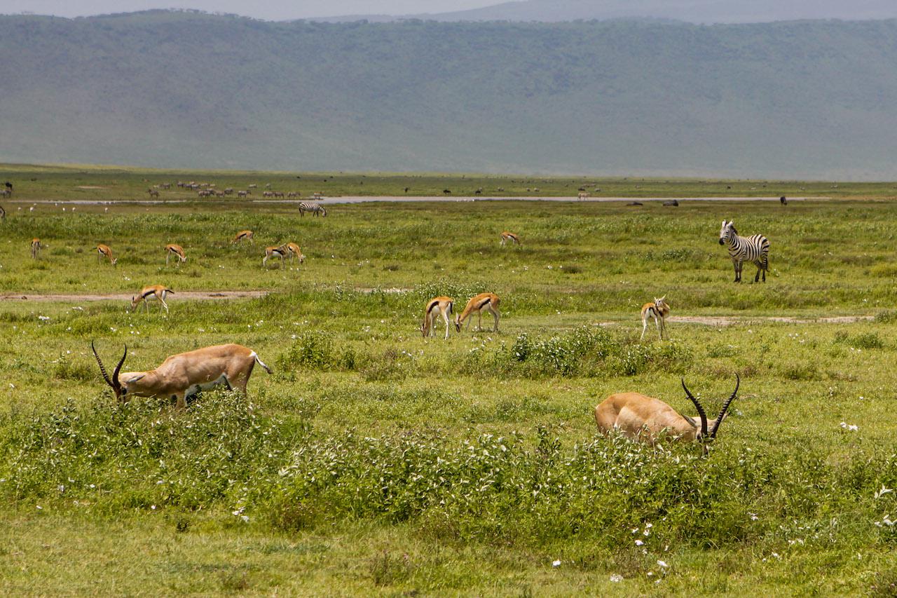 A korai indulást követő harmadik órában már a világ legnagyobb kalderájába ereszkedtünk lefelé, klasszikus lehajtható tetős szafari Land Cruisereken. A Ngorongoro-kráter a világ egyik legjobb helyszíne, ha az ember vadon élő afrikai állatokat akar látni. Van ott oroszlán, leopárd, kafferbivaly, elefánt, orrszarvú, víziló, mindenféle egyéb növényevő (zebra, gnú, gazella, antilop), hiéna, strucc, szervál, pelikán, flamingó. Összesen több mint 250 000 darab nagytestű emlős és több mint 400 féle madárfaj él ezen a fél Budapestnyi területen. A kráter pereme 600 méterrel magasodik a belső síkság fölé, és mivel a fala túl meredek, a zsiráfok a hosszú lábaikkal képtelenek leereszkedni. Nem mindennapi élmény volt az itt tett látogatás, mely után, visszatérve a főhadiszállásunkra, összepakoltunk, mert másnap kezdődött a sokkal könnyedebb és pihentetőbb szakasza az útnak, Zanzibáron át.